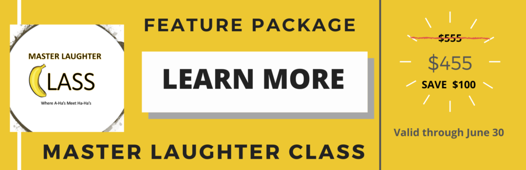 The Master Laughter Class is designed for speakers who want to add more humor to their programs. You’ll learn specific formulas and strategies to punch up your program, kick up your keynote or supercharge your sermon with laughs. Class levels vary depending on the amount of interaction you wish with the instructor. Full descriptions at MasterLaughterClass.com