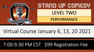 The Stand-Up Comedy Classes Level Two: Performing course is designed to prepare you and your material for the stage. You will receive lots of pinpoint specific feedback on the material you present from me and the other students.